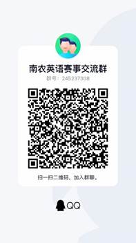 2. 本校学生报名时无需上传演讲视频,仅上传演讲稿即可。上传作品成功后,请扫码进QQ群等候通知地面比赛时间、地点。