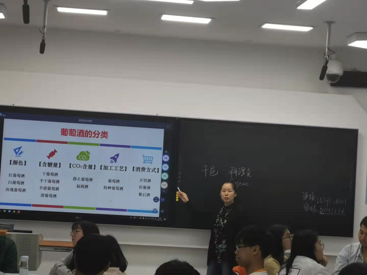 黄颖老师运用手机终端、教室多屏交互等方式,以《餐饮企业酒水管理》为例,与上课的同学们进行了智慧课堂教学示范,通过主题讨论、问题抢答、随机选人等方法,形成有效的师生互动,突出了课堂教学中学生的主体性,提高了学生的学习兴趣。