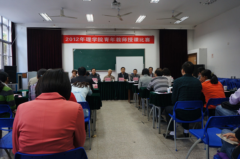 为了迎接学校组织的“第十届青年教师授课比赛”,提高青年教师的授课质量,“理学院2012年青年教师授课竞赛”活动于2012年10月17日下午2:00在教四楼B109成功举行。学院领导高度重视本次比赛,特邀学校教务处李俊龙副处长和教学督导戚道光老师、王琦老师和学院教学指导委员会委员共同担任此次比赛的专家评委。经数理化3个系遴选和自愿报名相结合的方式,共由6名青年教师参加此次比赛,我院近三年新进的老师参加了教学比赛的观摩。