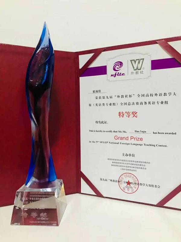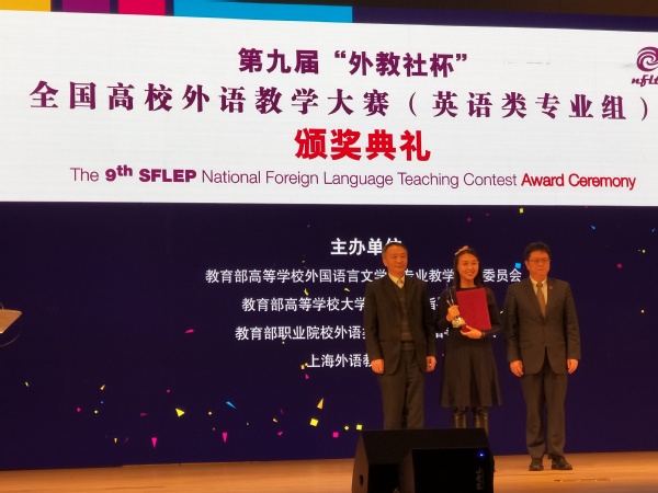 12月2日,由教育部高等学校外国语言文学类专业教学指导委员会、教育部高等学校大学外语教学指导委员会、教育部职业院校外语类专业教学指导委员会和上海外语教育出版社举办的第九届“外教社杯”全国高校外语教学大赛全国总决赛在上海外国语大学落幕。经过三天全国决赛、总决赛的激烈角逐,我校外国语学院的霍雨佳老师获得商务英语专业组特等奖(第1名)。这也是我校选手首次在这一大赛中获特等奖。